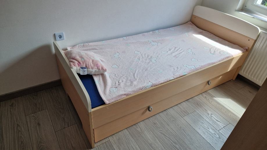 Malo korišteni i potpuno očuvani. Krevet ima ugrađenu ladicu koja se moze iskoristiti za skladistenje ili kao dodatni krevet. Krevet ima bijelo zaglavlje/uzglavlje (kupac dobiva dodatno bijelo, još zapakirano, gratis).