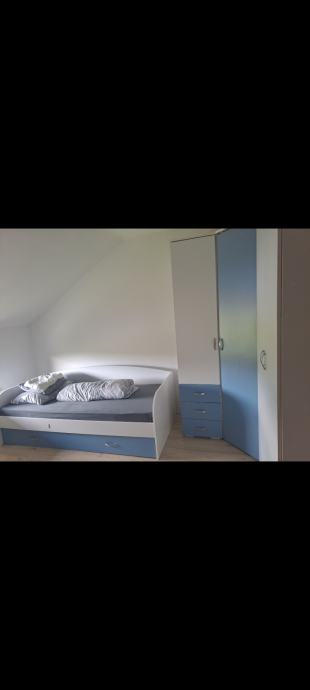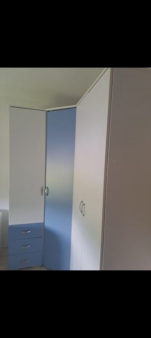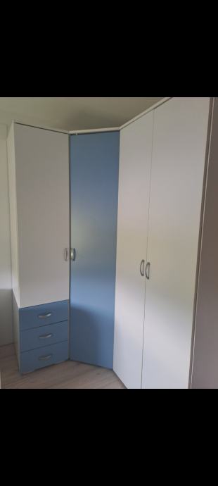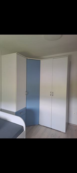 Ormari: ormar 1 vrata +3 ladice, kutni ormar i ormar 2 vrata, jedan krevet 90x200 i drugi krevet 90x200 s ladicom. Moguća kupnja i zasebno kreveta i ormara
