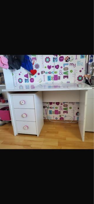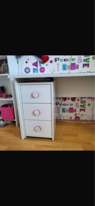 Prodajem povišeni dječji krevet s ladicama + radni stol.