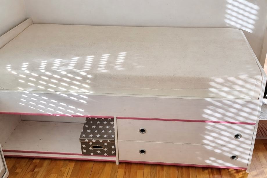 Prodajem sobu sa slike za curice ali je moguće rozne dijelove okrenuti da budu plavi pa je pogodna i za dečke, potpuno je funkcionalna sa manjim oštećenjima od korištenja, kako smo kupili novu, ova dolazi u dijelovima, madrac gratis ako želite...cijena 200€