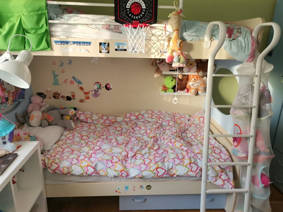 - krevet na kat (za madrac 200x80), odvojiv donji krevet (190x90) koji se može i samostalno koristiti,