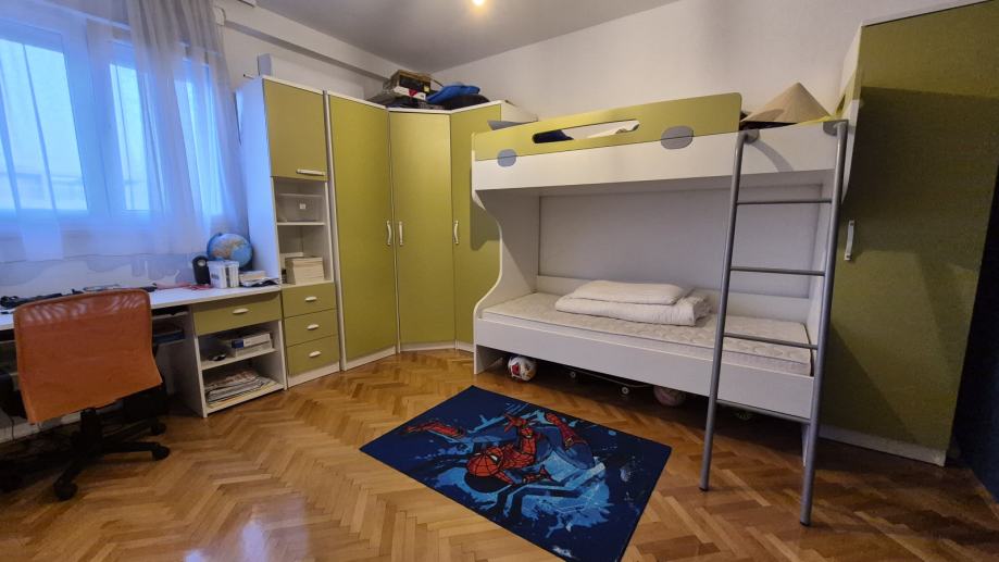 Prodajem kompletan namještaj za dječju sobu izrađen od masivnog korpusa 18mm debljine (25 mm za bočnice kreveta). Boja fronti ocean zelena.
