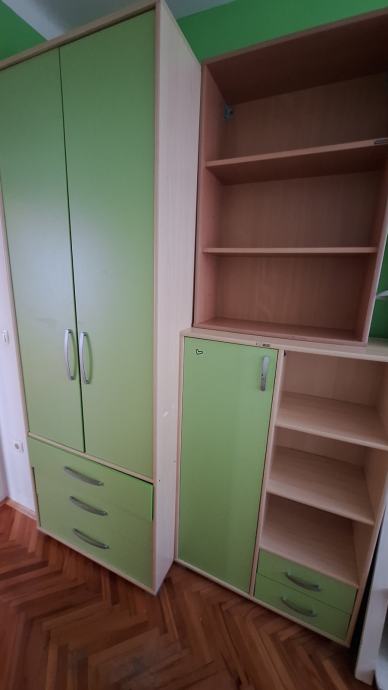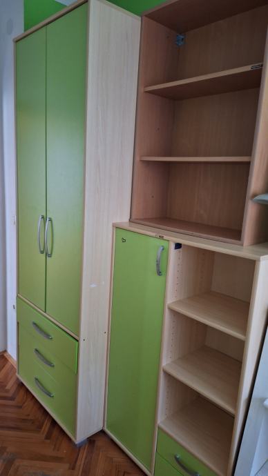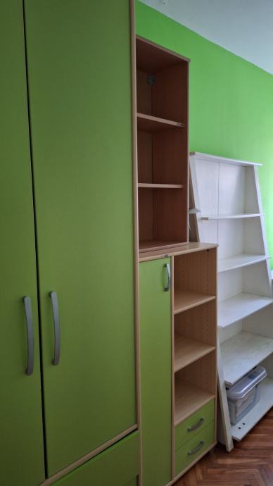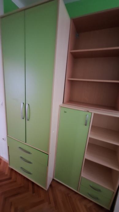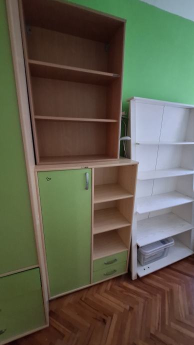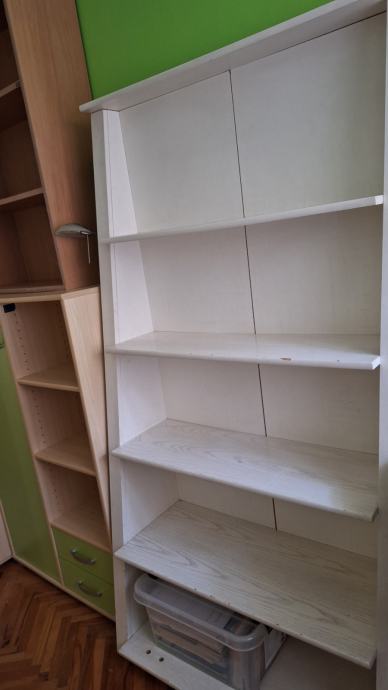 Radi selidbe prodaje se ormar visoki , bijeli poličar, regal,. Poklon visoka lampa uz bijeli poličar