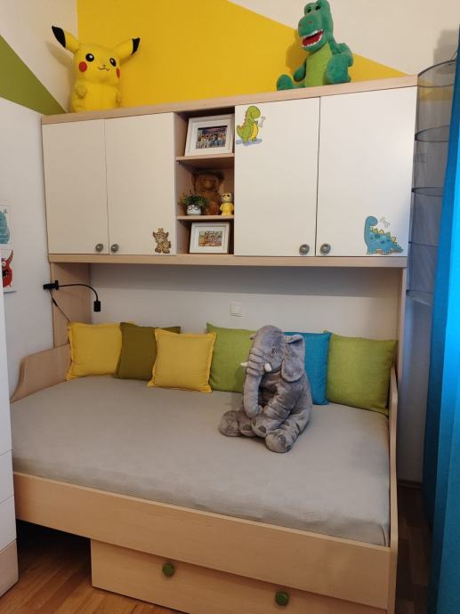Izvrsno stanje 10/10.U sastavu: Most, krevet s madracem hespo 120x200,škafet na izvlačenje ispod kreveta,ormar,kutna polica,viseći element