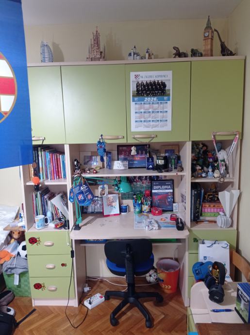 Ormari sa lijeve i desne strane radnog stola,ormari su sa ladicama i policom.