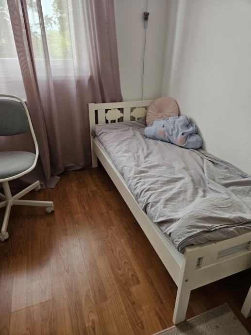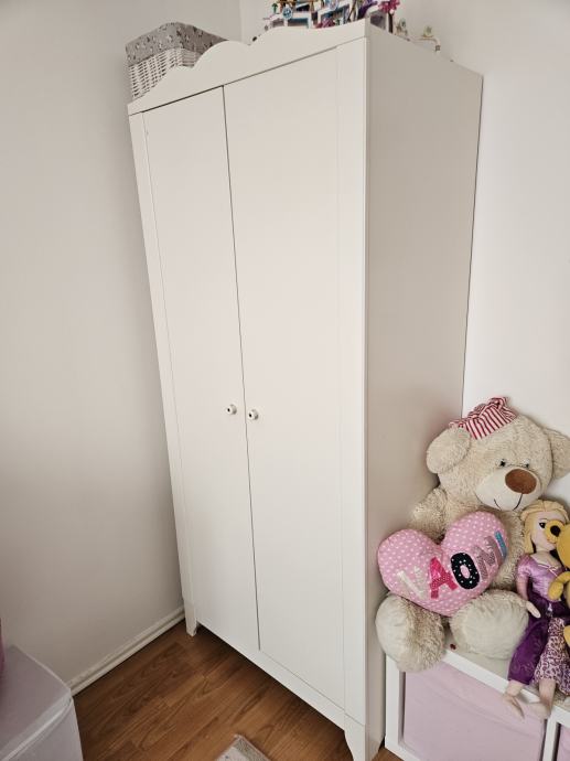 Prodajem očuvani ikea dječji krevet i ormar zbog preuređenja sobe. Uz kupnju cijelog kompleta dobivate na poklon bijelu policu na zadnjoj slici. Potrebno je osobno doći po namještaj. Cijena kompleta 120eura.