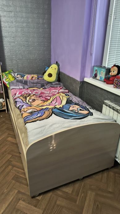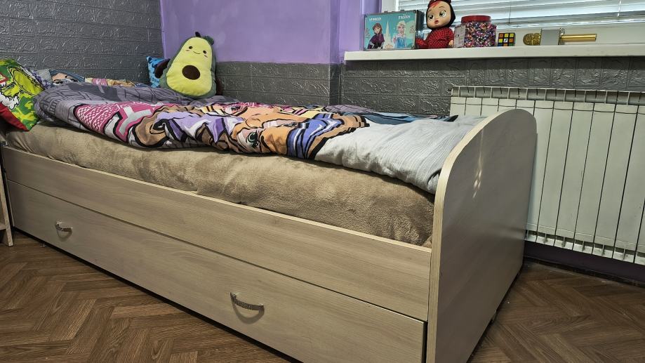 Prodajem dva novija kreveta, jedan na kat a jedan sa ladicom za igračke koja može poslužiti kao treći krevet, može se postaviti jedan ispod drugog ili razdvojeno kao na slici, prodaju se bez madraca. Cijena je 40 eura po krevetu