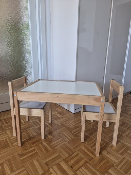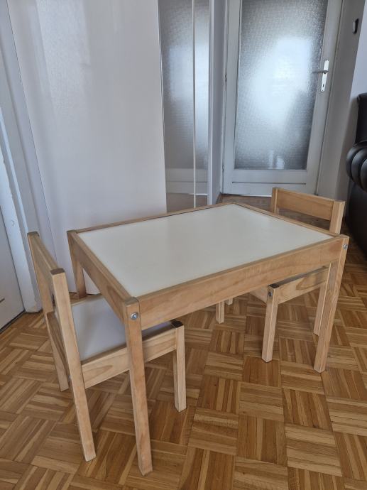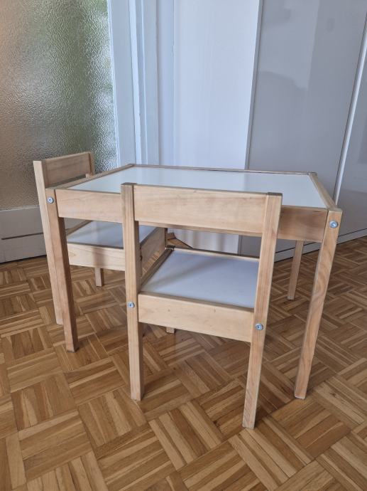 Ikea djecji stol sa dvije stolice, materijal drvo/bor.