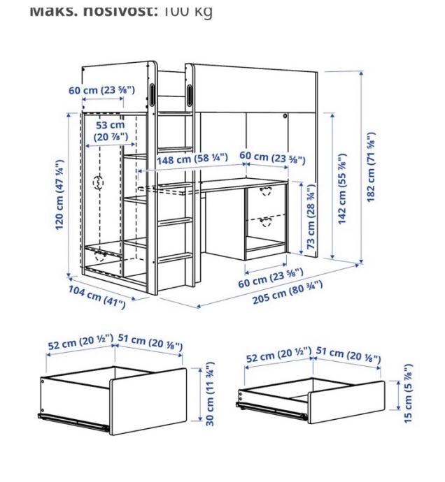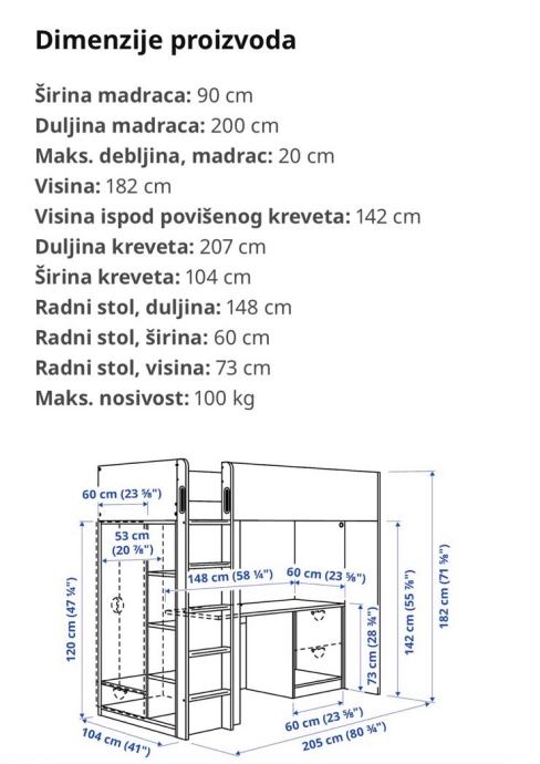Ikea povišen krevet, radni stol i ormar + madrac + radna stolica