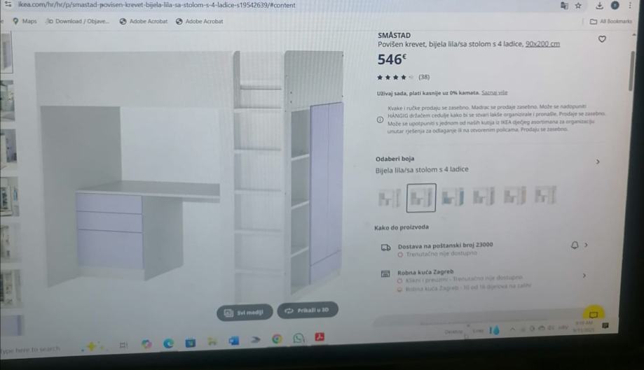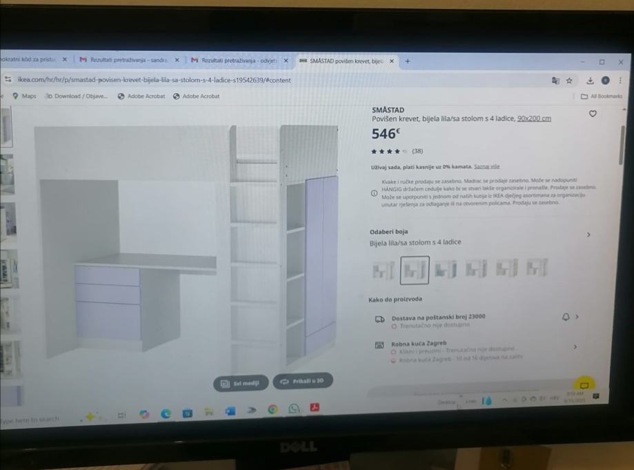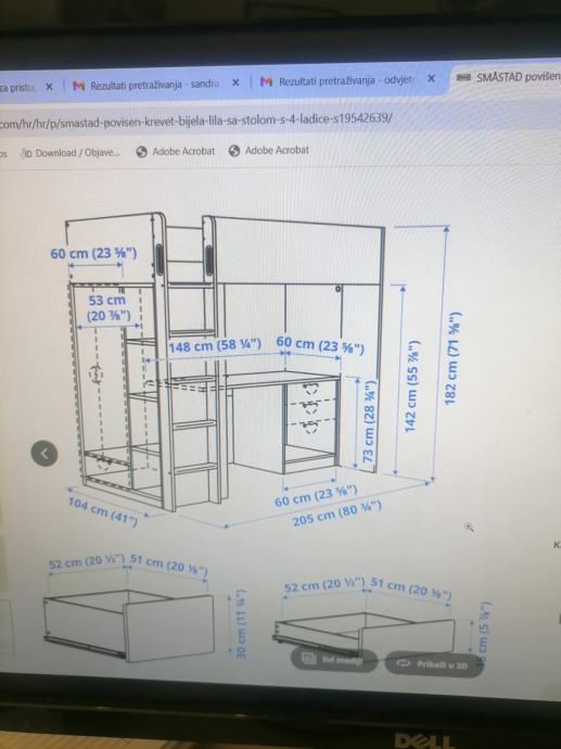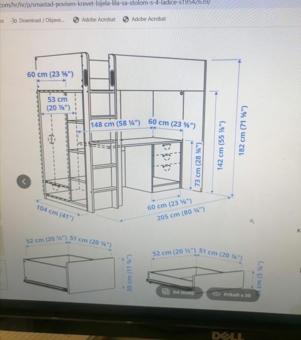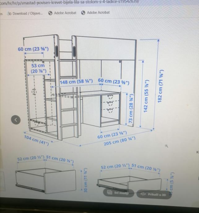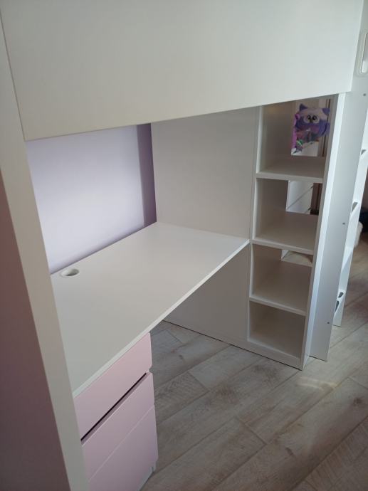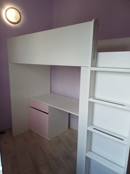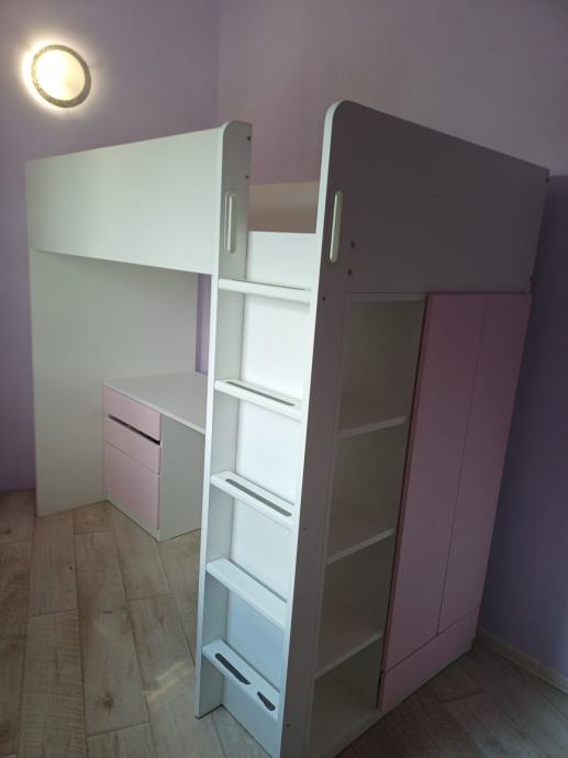 malo korištena dječja soba za curice, sadrži krevet , ormar , ladice, stol za školu sa tri ladice i police.
