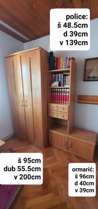 Ormar dimenzija 95 cm, dub 55,5 cm, v 200 cm.