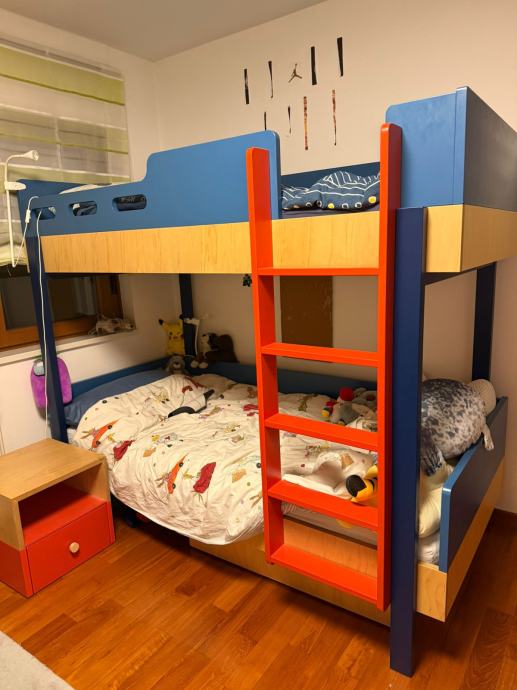 Krevet na kat - stranice od šperploče 25mm i lakiranog MDF25mm. Vrlo robustan i kvalitetno izrađen, u odličnom stanju.