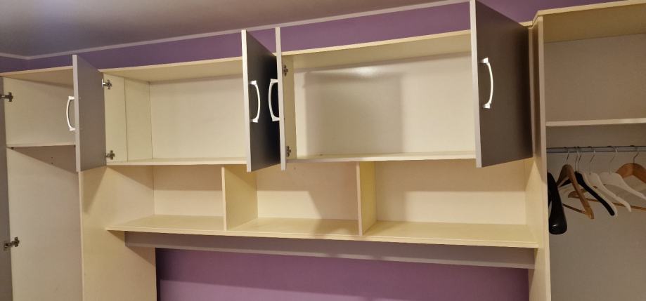 Prodajem komplet sobu,ormari i krevet+pomočni krevet u obliku ladice ispod kreveta. Kompletna soba je u vrlo dobrom stanju s minimalno vidljivim tragovima korištenja. Ništa nije pokidano . Boja sivo-bijela idealna za dječake. Preuzimanje u osijeku.