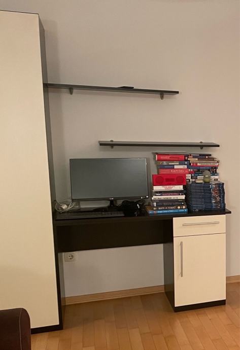 Prodajem ormar (90cm*55cm*203cm) s radnim stolom (120cm*80cm*55cm). Ormaric na radnom stolu je sirine 40cm.