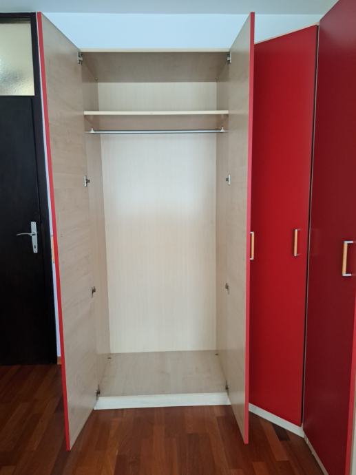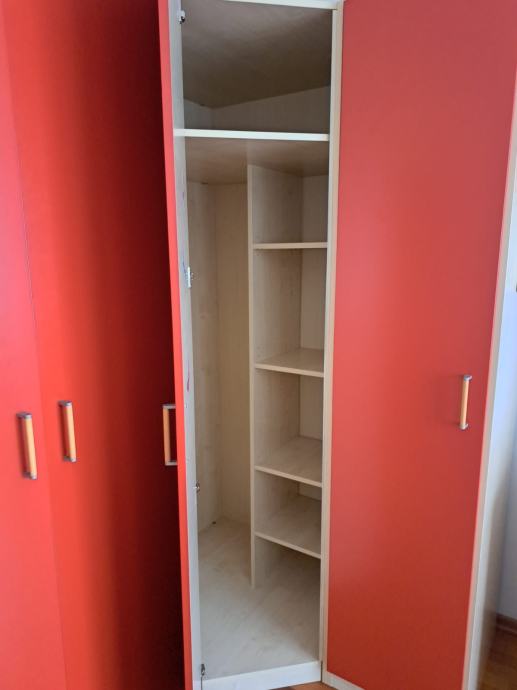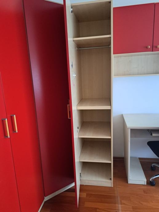 Ormari su očuvani i funkcionalni u potpunosti. U cijenu je uključeno i veliko ogledalo s bočne strane ormara te radni stol.