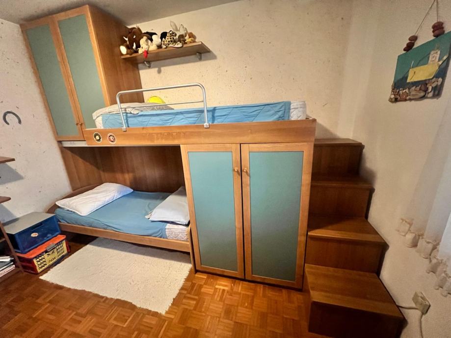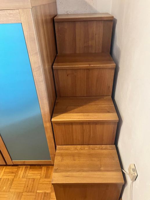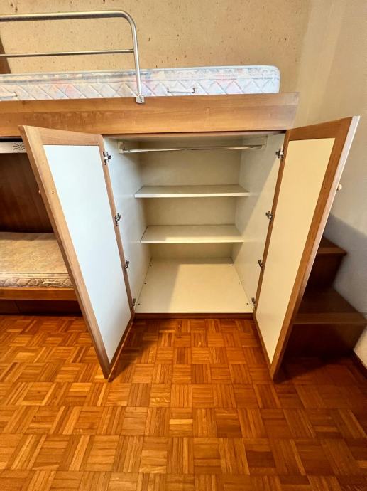 U to dolazi sve s fotografija; 2 kreveta, 2 ormara, 2 radna stola, regal, te stepenice koje se mogu otvarati. Sveukupna širina kreveta na kat s ormarima je 3,5m.