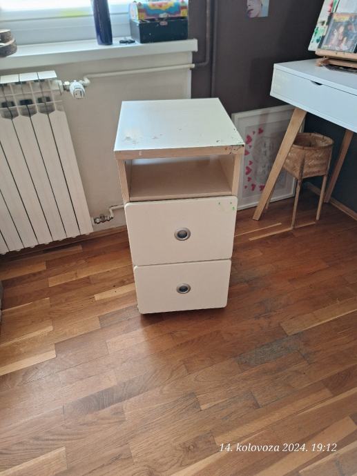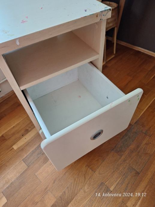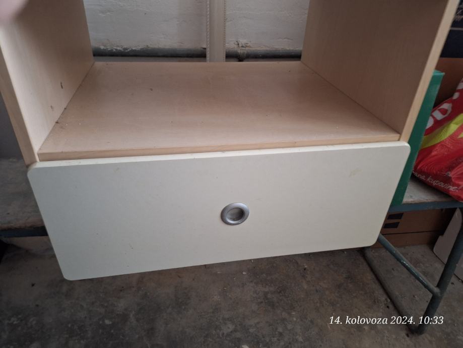 Nalazi se u Sisku. Osobno preuzimanje. Saljem video po potrebi jer sam ga snimila prije sklapanja. Lagano se sastavlja (Ikea sistem). Uz stol poklanjam nizu ladicarku koja je dio seta. Visoka komoda je isto dio seta i kosta 25 eur