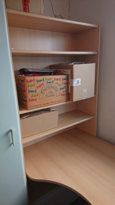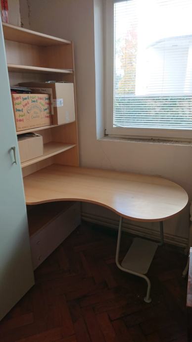 6. Stol + police i ladice - stol dubine 90cm na punom dijelu, duljina 150cm, širina polica 95cm, visina ormara 195cm, dubina polica 34cm