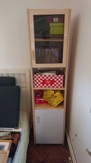 1. Gore plavo, dolje 4 ljubičaste ladice - 90cm širina, visina 260cm, dubina 60cm