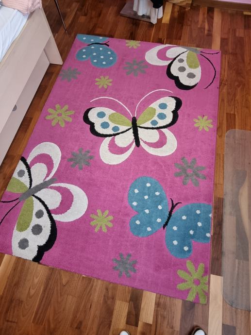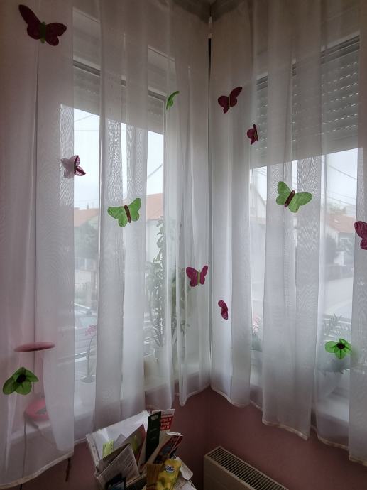 GRATIS rozi tepih sa leptirima (kupljeno u Lesnini) i dvije zavjese sa leptirima (šivano u Velani).