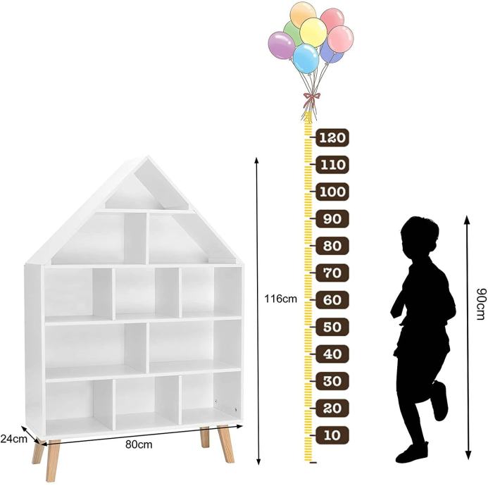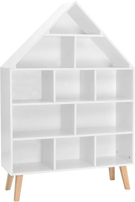 Bijela dječja polica u obliku kućice s 5 razina za igračke i knjige
