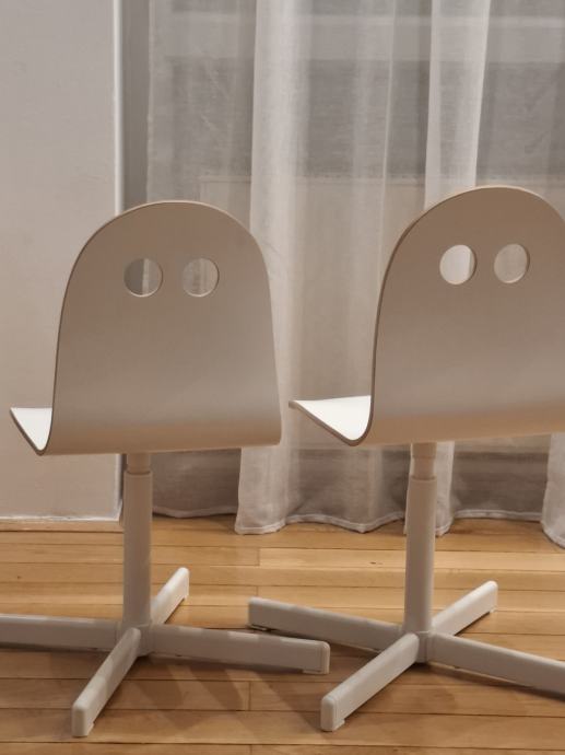 Prodajem dvije radne stolice za djecu za dob djece od 2 do 8 godina otprilike, modernog dizajna, kvalitetne i očuvane. Visina podesiva. Cijena jedne stolice 30 EUR.