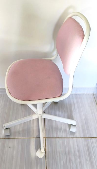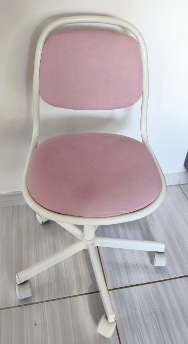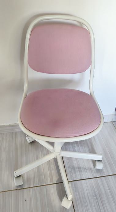 Prodajem Ikea Orfjal dječju radnu stolicu, visinski je podesiva. Boja tapaciranja je nježna ružičasta, dok je metalni okvir i podnožje bijele boje. Stolica je u dobrom stanju