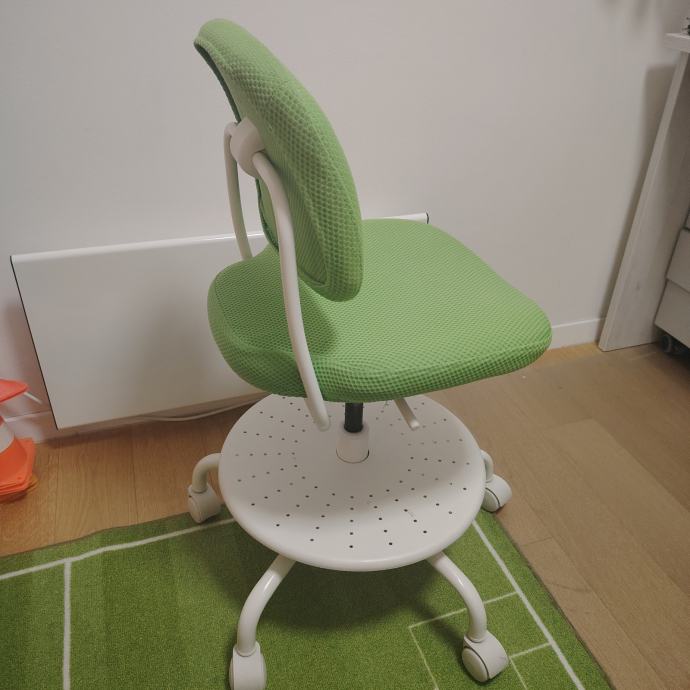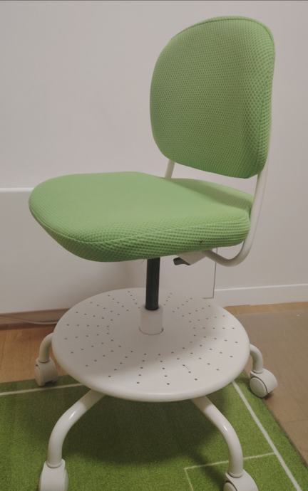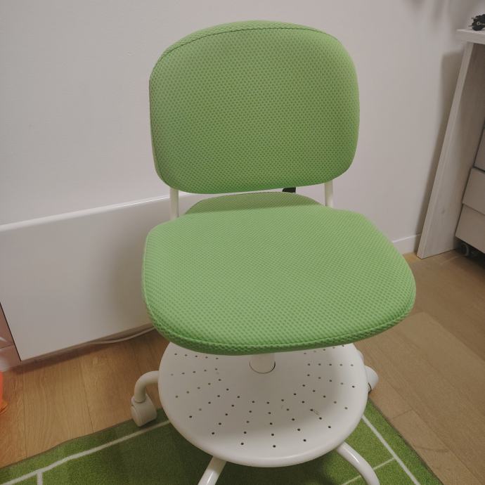 Dječja ergonomska stolica s fleksibilnim naslonom, podesiva po visini. Zelene boje. Dobro očuvanja, pogodno za dijete do 12 godina.