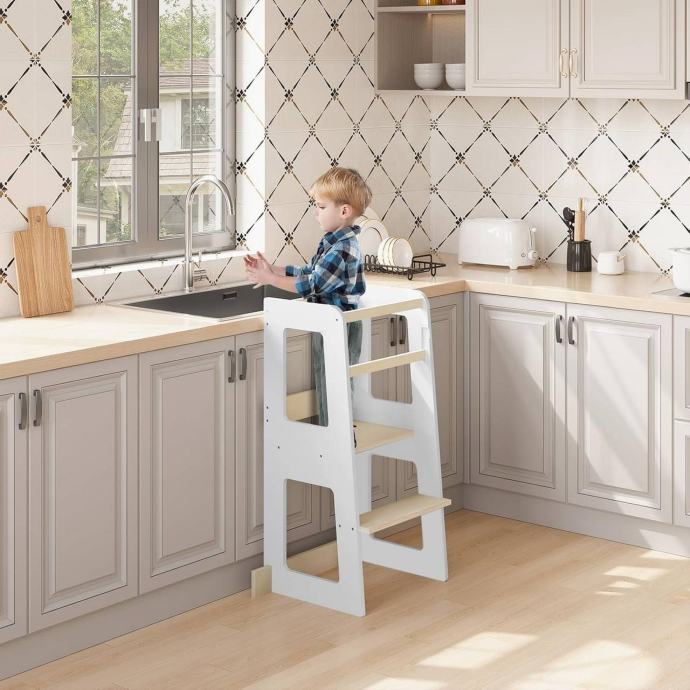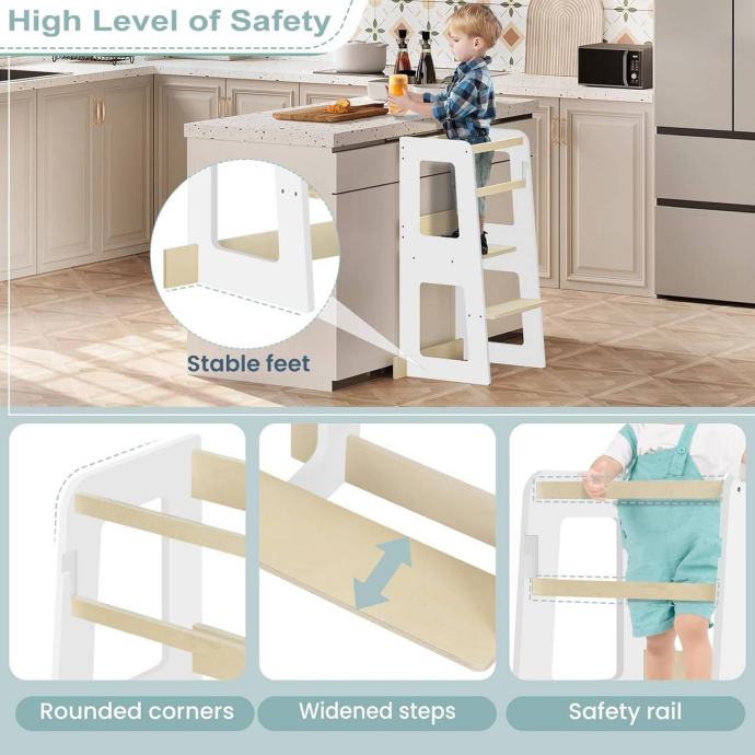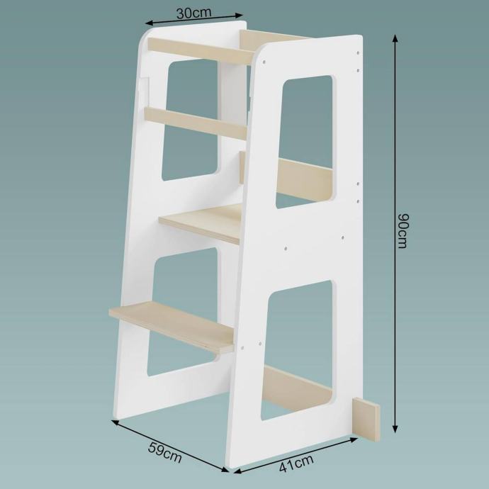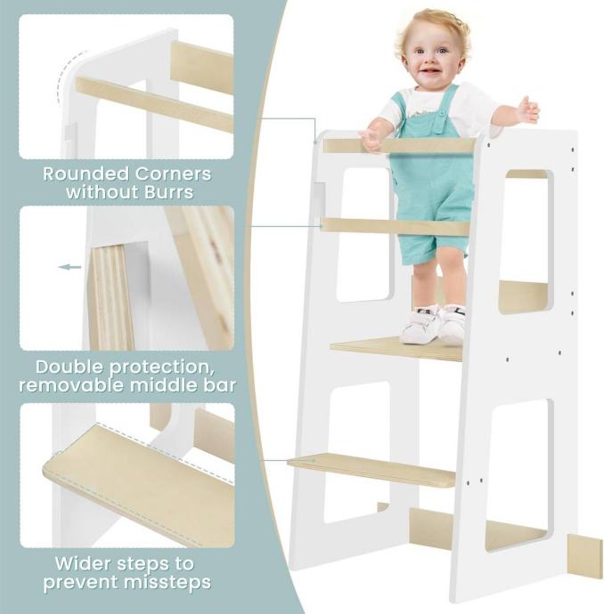 Montessori učna kula: Djeca mogu stajati ili sjediti i sudjelovati u obiteljskim aktivnostima, promatrati i učiti te razvijati samopouzdanje i osjećaj ravnoteže. Idealan je za kuhinju, kupaonicu ili blagovaonicu.