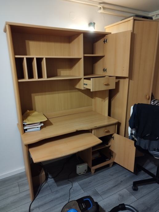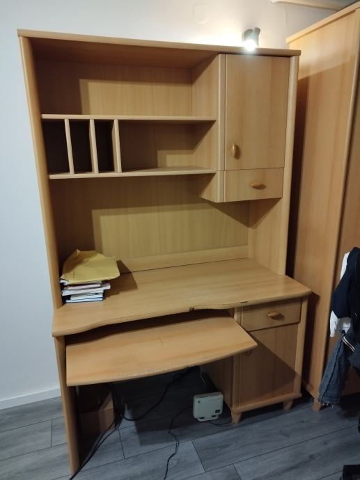 Prodajem dječji pisaći stol dimenzija: visina stola 72 cm, širina 120 cm, dužina 60 cm, ukupna visina 182.
