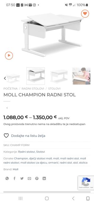 Uz stol prodaje se i podesiva stolica isto marke Moll. Tkanina se moze skinuti i prati.