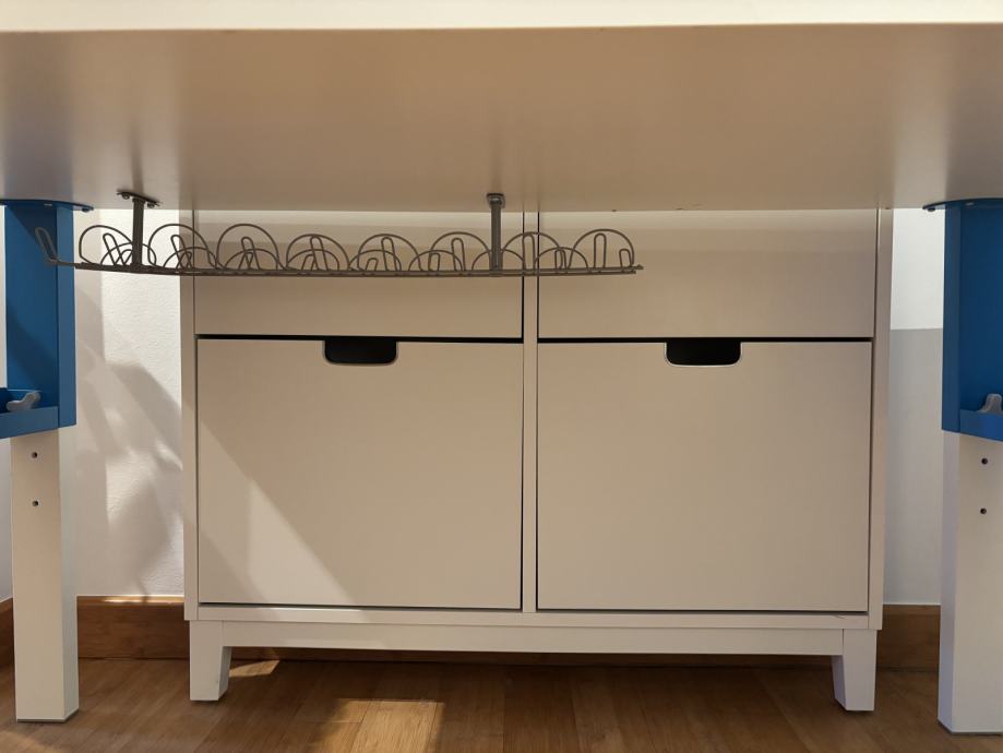 Dječji radni stol dimenzija 128x58 s monitranim nosačem za kablove.