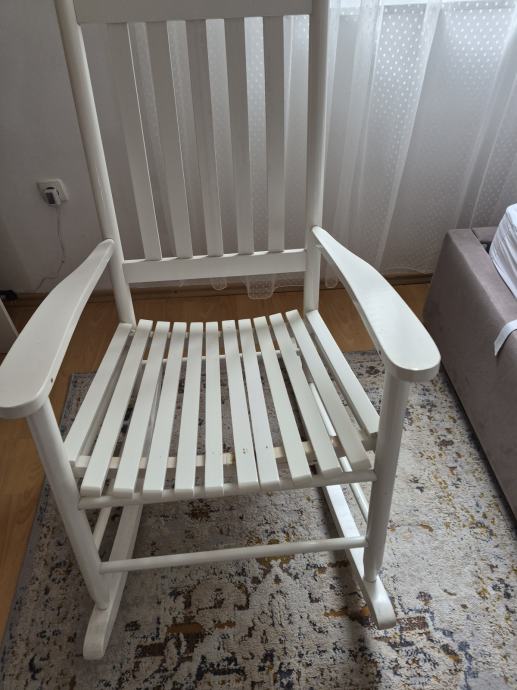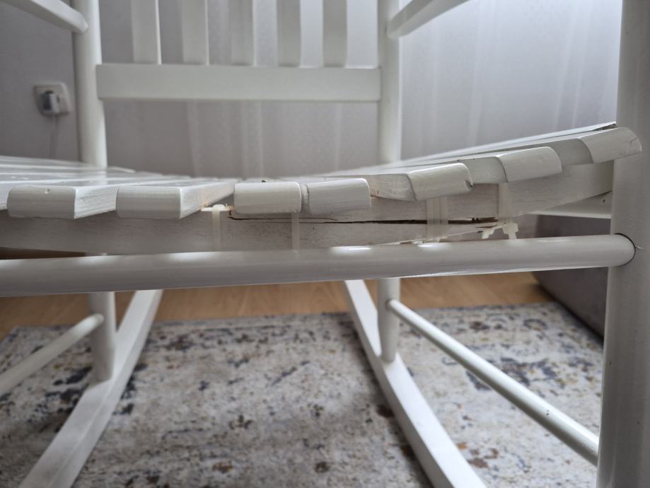 Drvena stolica za ljuljanje, oštećenje prikazano na slici..moze se popraviti tko zna, i dalje upotrebljiva