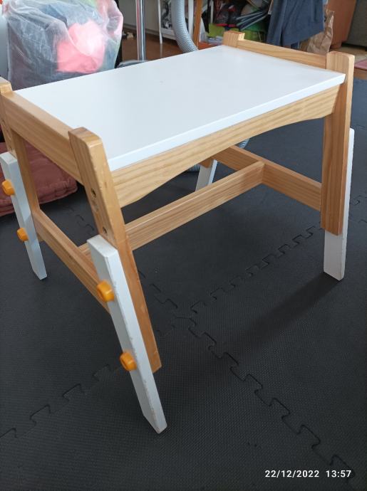 Prodajem korištenu, ispravnu, neoštećenu drvenu stolicu za dječji pisaći stol. Dimenzije dxšxv 55x52x47cm