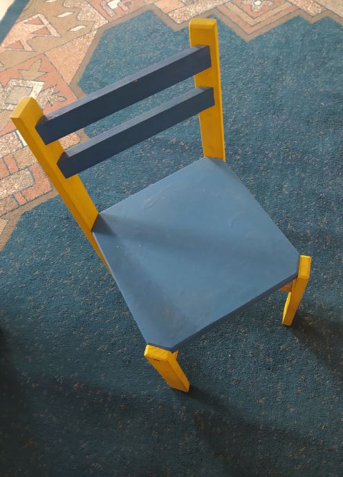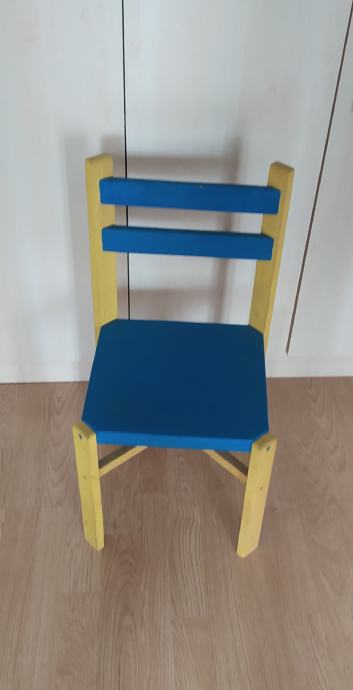 Prodajem rabljeni plavo-žuti dječji stolac.