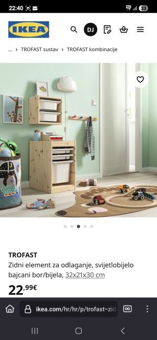 Prodajem Ikea Trofast zidni element u boji svijetlobijelo bajcani bor s dvije bijele posude za odlaganje.