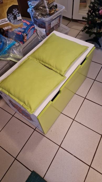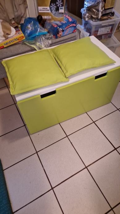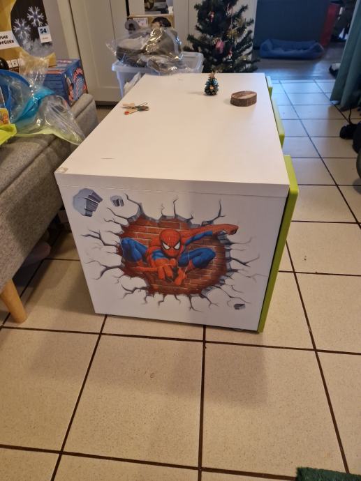Prodajem, ispravan sanduk za dječju sobu koja služi i kao lijepa klupa. Ikea. Smastad. Dim: 90x52x48. Ima naljepnicu Spiderman..povoljno