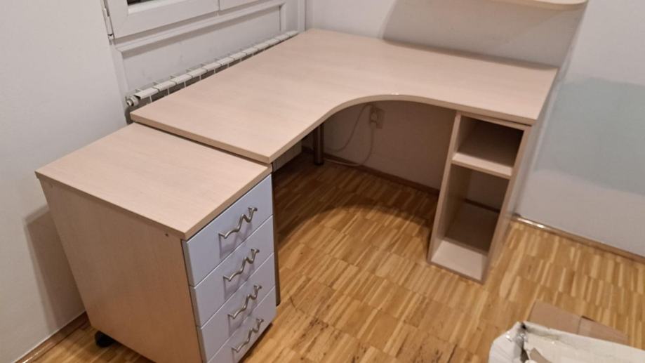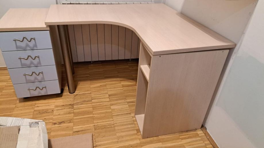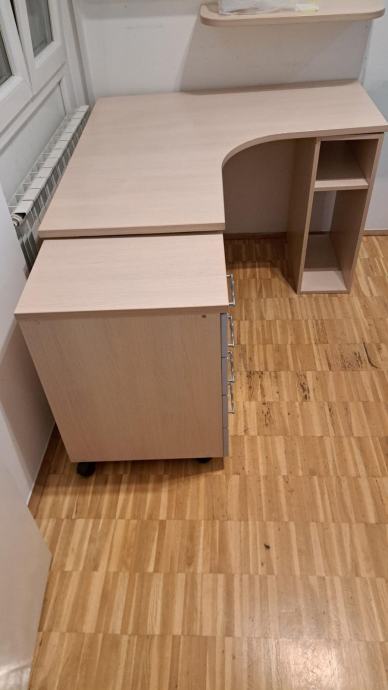 Dimenzije kutnog pisaćeg stola su: 115x115cm, visina 75,5 cm, prostor (rupa) za stolicu: 54x54 cm