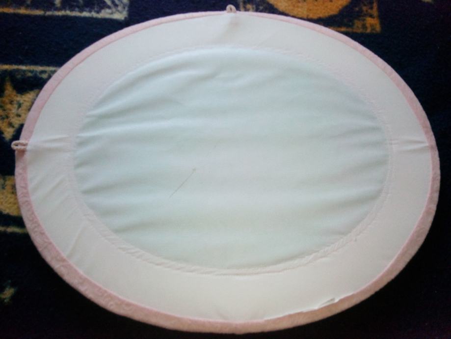- okvir od baršunastog materijala svijetlo roze boje, s aplikacijom ruža, mekano podstavljen