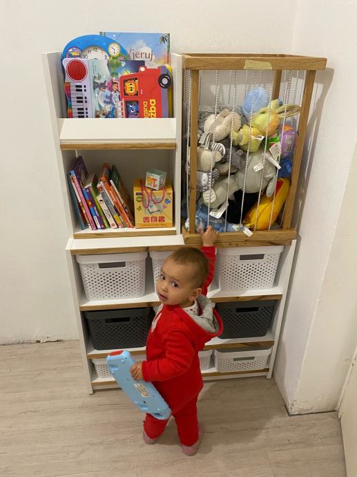 Ovo je primjer koji sam napravio za svoje unuče i ovaj primjer je 150 EU za vas mogu izraditi u dimenzijama koje želite i komponentama koje vam trebaju (za plisance, slikovnice,sitne i velike igračke ) boje je također moguće mjenjati.