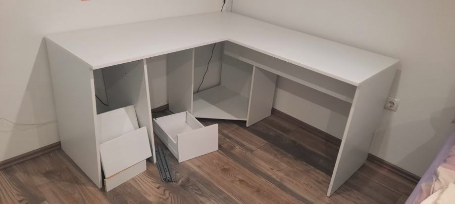 Prodajem novi pisaci stol. Nije u potpunosti montiran zbog ladica koje nam ne odgovaraju s lijeve strane pisaceg stola.