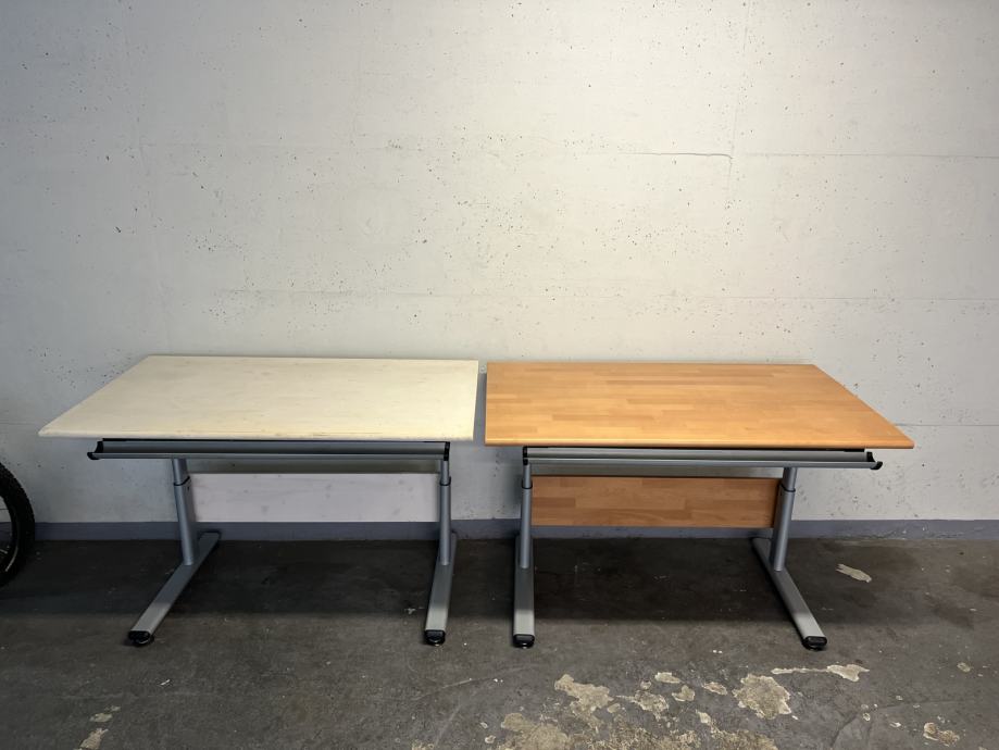 Dva pisaća stola Paidi 120x70, kupljeni u Njemackoj, podesive visine, sa nagibnom pločom, bijeli i smeđi (za dječaka i djevojčicu). Smeđi kao nov, bijeli sa sitnijim ostecenjem od koristenja (mekše drvo). Oba 100€