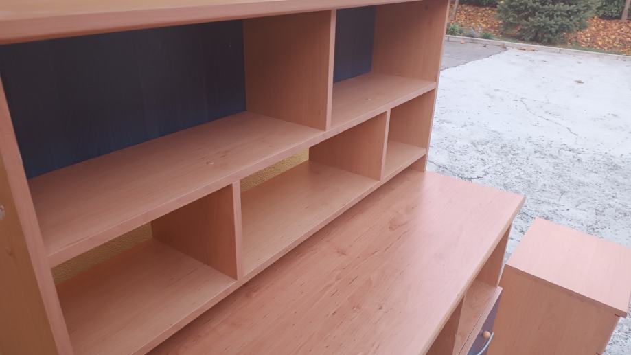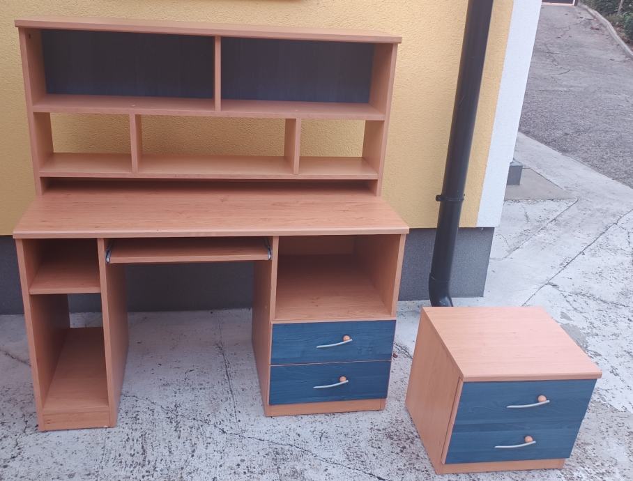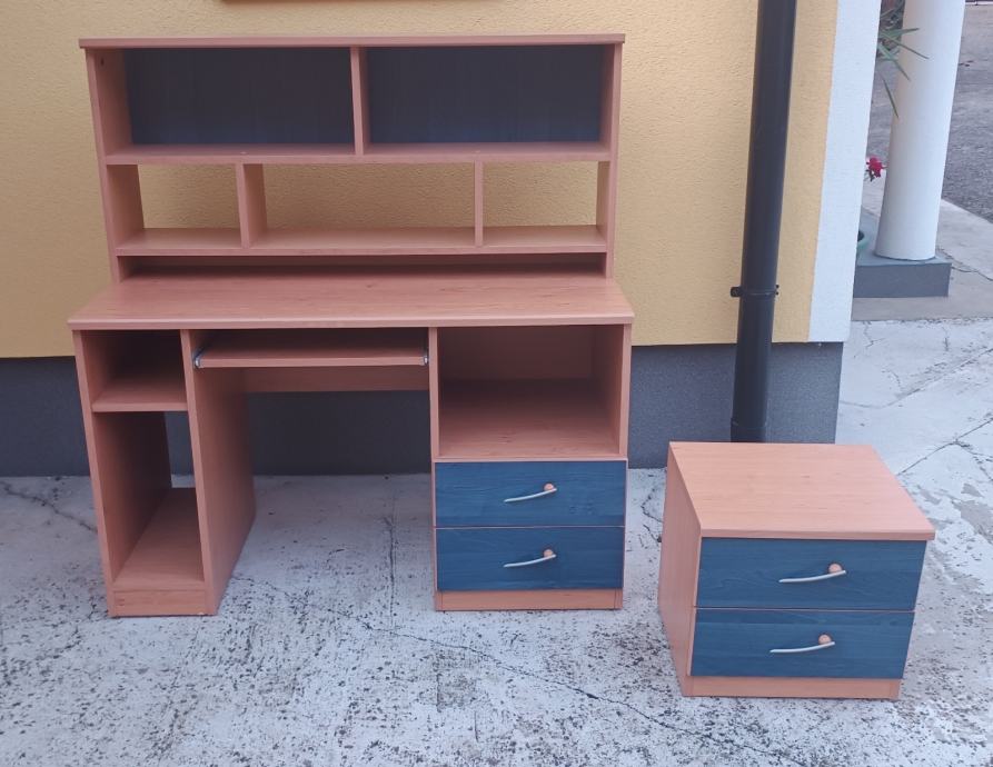 Prodajem pisaći stol dimenzije (DVŠ) 125x76c5, policu 125x58x28,5 i noćni ormarić 46x44x39 sa dvije ladice.