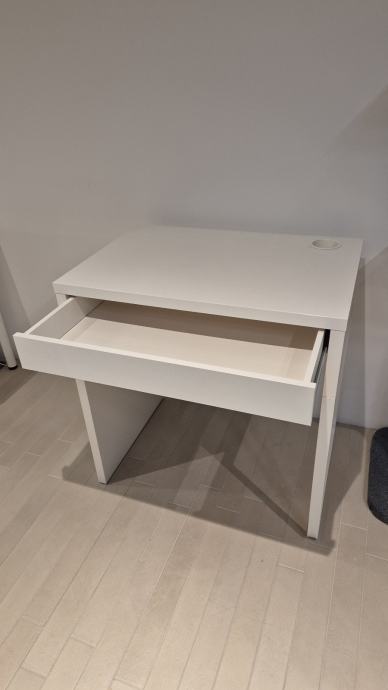 Poklanjam Ikea Micke dječji stol u bijeloj boji. Stol ima jednu ladicu i otvor na gornjoj ploči za provlačenje kabela. Kompaktan je i praktičan za dječju sobu.