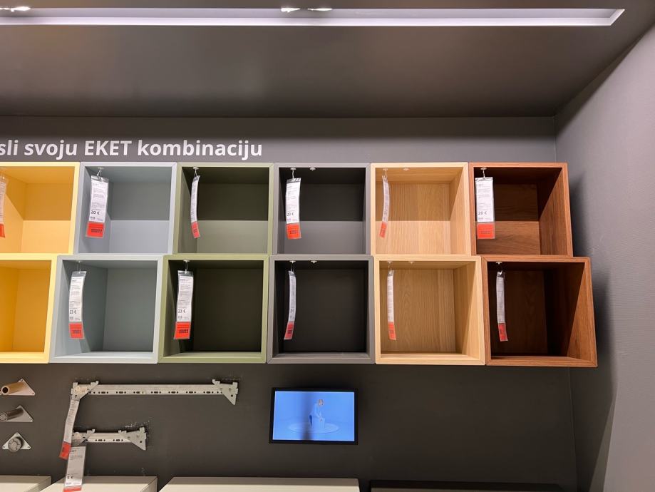 Cetiri police u obliku kocke,svaka se posebno stavlja.Kvalitetno puno drvo,imaju nosace za zid i sarafe.Police su kao nove,koristene svega 2 mjeseca.Kao nove.Slika za primjer iz Ikee kako stoje na zidu.Kocke nisu Ikeine,kupljene su u Cadoro namjestaju.Prodajem sve skupa za 40€
