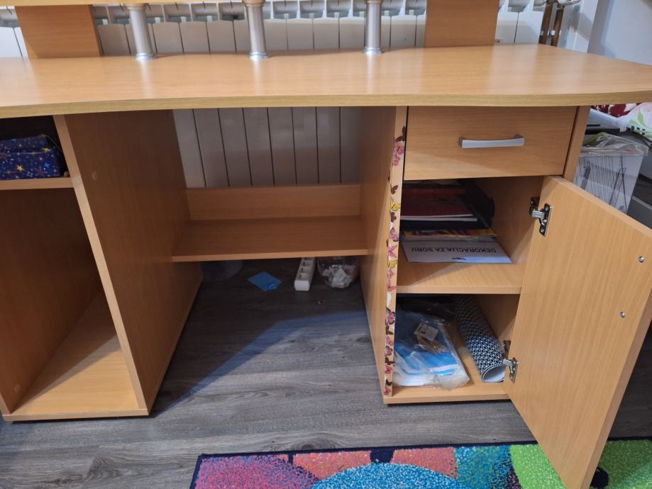 Prodajem radni stol dimenzija 160x80cm. Stol je prostran zbog dodatne povišene police.
