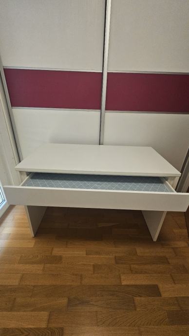 Radni stol, dimenzije 120 x 60, visina: 76 cm. Bijeli, s ladicom dubine 8 cm (cijelom dužinom stola). Razlog prodaje: višak.