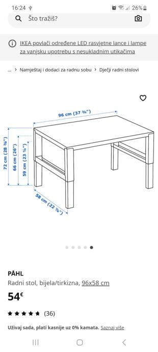 Prodajem Ikea Pahl dječji radni stol. Stol se može podizati i spuštati kako dijete raste. Stolica je gratis, cijena je fiksna.