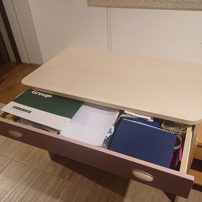 Prodajem radni stol za dječju sobu. Stol je kupljen u Primi. Visina 75 cm, dubina 56 cm i širina 100 cm. Stol ima veliku ladicu. Stol je u potpunosti očuvan, bez ikakvih oštećenja. Molim ozbiljne kupce da me kontaktiraju na mobitel pozivom, na poruke ne odgovaram.