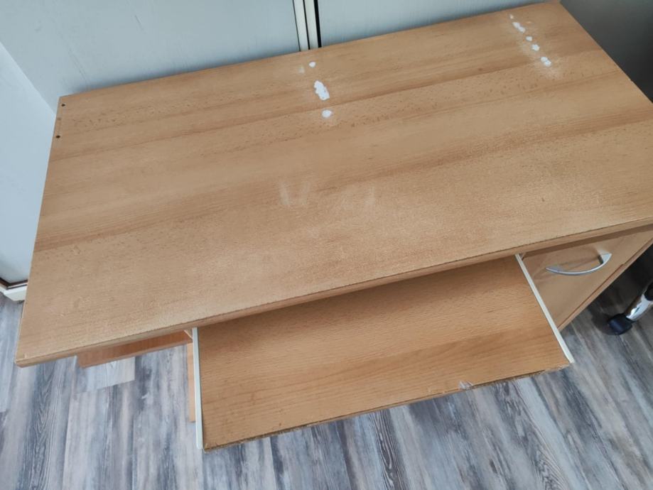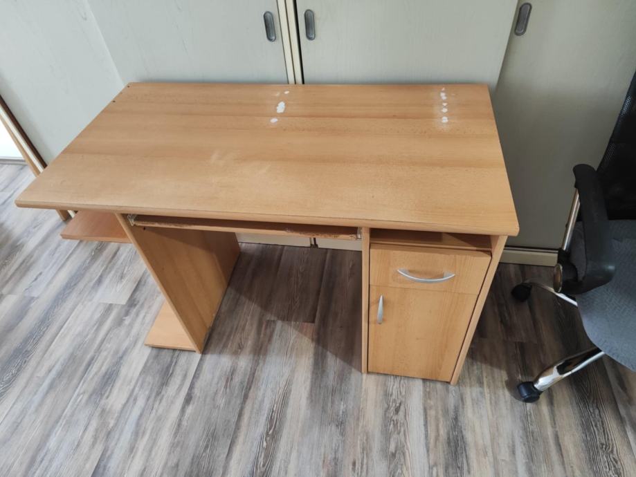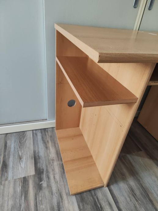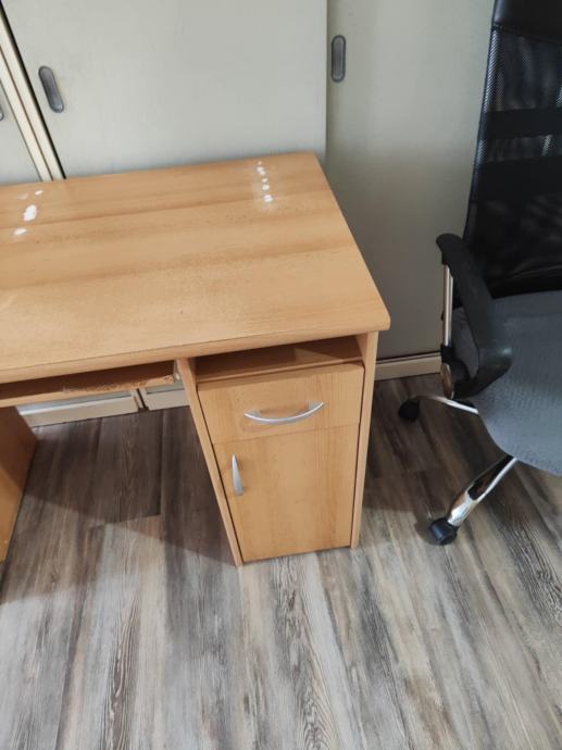 Poklanjam radni stol sa ladicom i ormaricem. Na radnoj ploči stol je imao dodatnu visoku policu koju smo maknuli te rupice zatvorili drvofiksom ( Bijele točkice vidljive na fotkama koje se mogu zafarbati ili pokriti ljepljivom folijom ). Stol ima sitna ostecenja. Nalazi se u zgradi,18-ti kat ,lift, pristup vozilom ispred ulaza zgrade.
